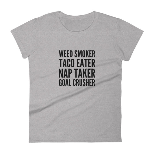 Weed Smoker, Taco Eater, Nap Taker, Goal Crusher Women's Short Sleeve T-shirt