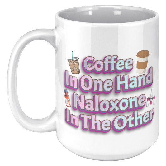 Coffee in One Hand Naloxone in The Other Mug